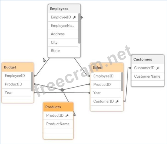 Refer to the exhibit. A data architect is reviewing an app that is under development. The app as NOT been published. All data has been validated in all charts and KPIs. The data architect notices that the data model has two fact tables with common field names that cause a synthetic join. Which step should the data architect take to correct the data model without affecting the app?