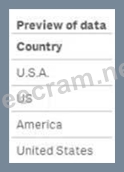 Refer to the exhibit. The business analyst previews some data and notices different values for the United States in the Country field. The analyst must be able to report the total sales for the United States. The data architect must fix this issue in the LOAD script. Which function should the data architect use to fix data quality issue?