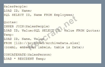 A data architect wants to combine data on present and historic sales performance. The historic data is stored in a de-normalized archive, and the present data is maintained in a database. The output must be contained in a single table. Which script should the data architect use? A) B) C) D)