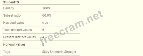 Refer to the exhibit. A data architect builds a simple data model to show the relationship between students and exams. The data is loaded. Every StudentID in the Exams table should be found in the Students table. Some students have NOT taken an exam. The data architect selects the field "StudentID" from the Students table and sees the following: A data architect needs to fix this anomaly. What should the data architect do to ensure data integrity?
