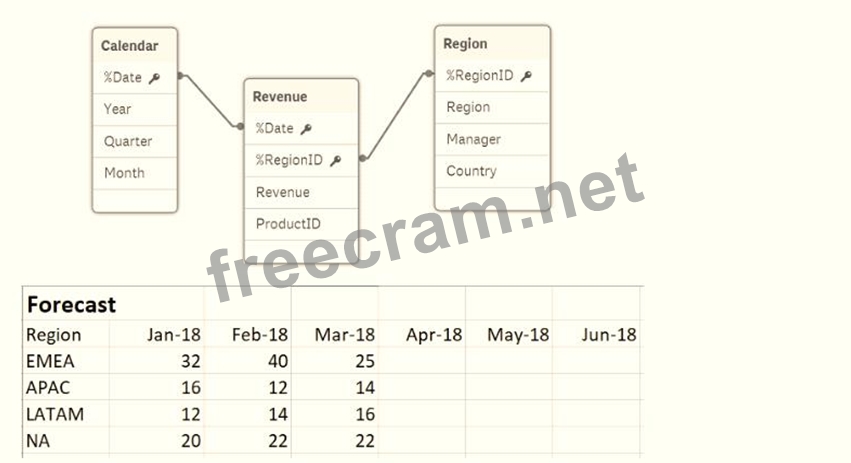 Refer to the exhibit. A business department is forecasting revenue within an Excel spreadsheet. A data architect needs to include this forecast into the existing data model, and without losing any data. Which two sets of steps will meet these requirements? (Select two.)