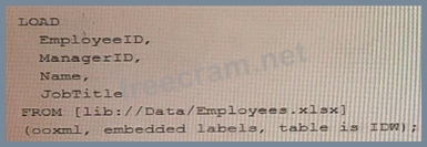 Refer to the exhibit. A Human Resources Director needs an app to analyze organizational structure. The Directory is particularly interested in the longest levels of line management. Two table loads are required. Both use the same basic structure. Which two table load prefixes are needed?