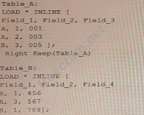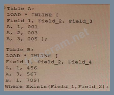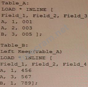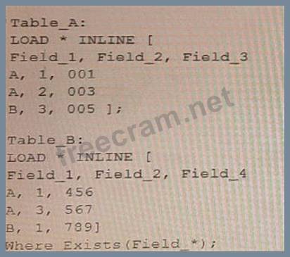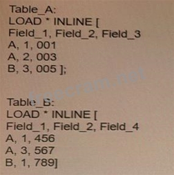 Refer io the exhibit. A data architect needs to modify the script to ONLY load rows from Table_B when Field_1 and Field_2 are the same as in Table_A. (For example, only the row containing A, 1, 456 should be loaded from Table_B.) Which script should the data architect use? A) B) C) D)