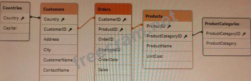 A data architect needs to add a Budget table to the current Qlik Sense app. A Budget table with the fields Budget, CustomerlD, and ProductlD is loaded into the model. What will be created?