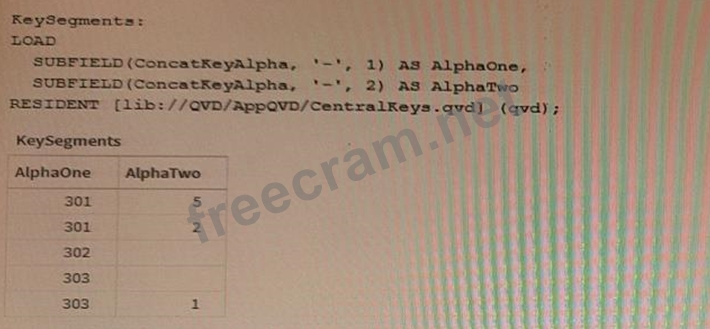 Refer to the exhibits. While debugging an app, a developer loads data from an application layer QVD file. In the process of separating a concatenated key into two parts, some split results are missing data What should the data architect do?