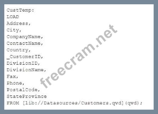 * Resident Load with Order By:After the initial load, you perform a Resident Load from the CustTemp table and apply the Order By clause to sort the data by the Country field in ascending order.