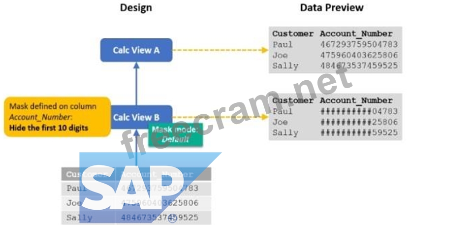 When you preview calculation view A, the account number is not masked.What could be the reason?