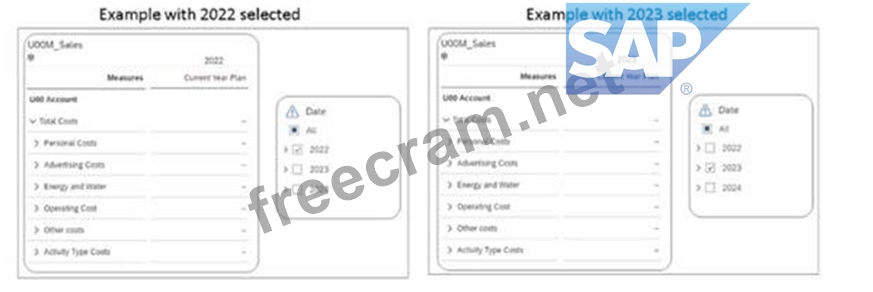 You create an input form with a restricted measure called 'Current Year Plan' based on the amount measure and date set to current year. In the attached image, what is used to display the selected year as a column header?