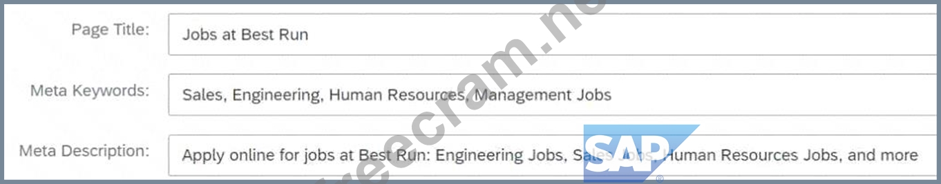 What results can you expect if the sitewide metadata is set up as shown below in Career Site Builder (CSB)? Note: There are 2 correct answers to this question.