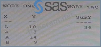 Question 162: Given the following SAS data set ONE: ONE GROUP SUM A 765 B ...