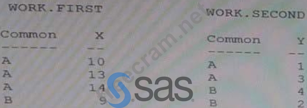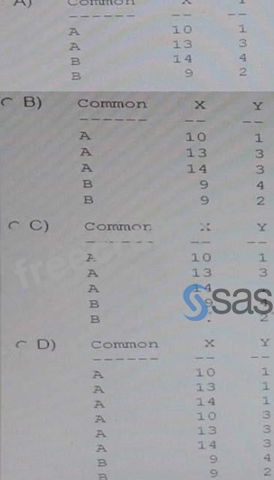 2 commentQuestion 64: Given the SAS data sets shown on the left, the SAS program o...