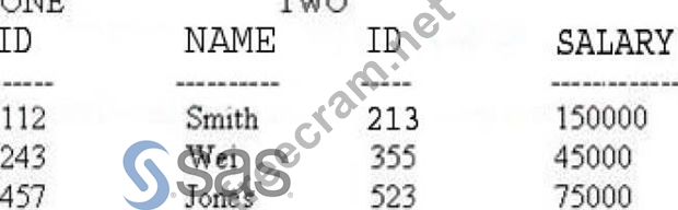 Question 148: Given the SAS data sets ONE and TWO: (Exhibit) The following...