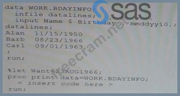 Question 59: The following SAS program is submitted: (Exhibit) The purpos...