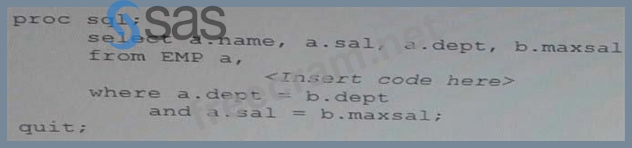 Question 178: The following SAS program is submitted: proc sql; select * f...