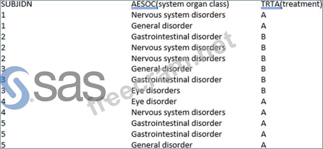 Given the data set below, which SAS program correctly counts the of number of unique subjects for each combination of system organ class and treatment?