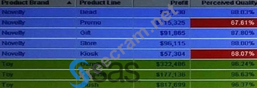 Question 64: For a cross tab visualization created with SAS VISUAL ANALYT...
