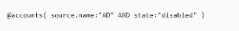 Yes, the search syntax @accounts( source.name:"AD" AND state:"disabled" ) is correct, as it matches the necessary criteria for finding disabled AD accounts. This query searches for accounts in the AD source where the account state is set to "disabled," which effectively filters for the desired result. Key Reference from SailPoint Documentation: Correct Syntax for Disabled Accounts: The search correctly identifies accounts with a disabled state using this syntax.