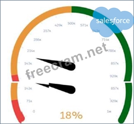 In the scenario described, the sales managers at Universal Containers require a Gauge chart that not only shows the current percentage of opportunities in their pipeline but also indicates whether they are below or beyond their set targets. The appropriate widget parameters to achieve this visualization in Salesforce CRM Analytics (formerly known as Einstein Analytics) are: Reference Line: This parameter is crucial for defining a specific target value on the gauge chart. It visually marks a point that represents the target goal, providing an immediate visual cue as to whether the current percentage is below or above this point. Markers: Markers are used to represent and highlight specific values on the gauge chart. They can be utilized to emphasize the current percentage level of the pipeline, making it instantly visible how close or far the current value is from the reference line or target. Conditional Formatting: This feature allows the chart to change color or style based on whether the current values meet, exceed, or fall below the target. It is a critical visual tool for quickly communicating performance against targets. Conditional formatting can be set to alter the appearance of the gauge's fill color based on whether the values are above, equal to, or below the reference line, thereby providing an intuitive visual representation of performance relative to targets. The combination of these three parameters enables a highly effective visualization for sales managers to monitor their performance against key metrics and targets directly on their dashboards. This setup is aligned with Salesforce's best practices for creating meaningful and actionable insights within CRM dashboards, ensuring that users can easily interpret and react to the data presented. For more details on configuring these parameters, you can refer to Salesforce documentation and specific Trailhead modules that cover dashboard creation and customization: Wave Analytics Explorer Building Lenses, Dashboards, and Apps in CRM Analytics These resources provide in-depth training and examples to help users effectively use Salesforce CRM Analytics for a wide range of data visualization needs.