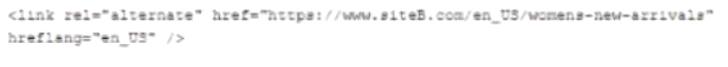 A company manages its regional operations asseparate businesses. The regional sites (Site A and Site B) operate with: * Separate realms * Deferent code bates * Different category navigation menus * Frequent updates on category structure The requirement from the business is to provide hreflang link tags on category pages pointing to the same category on the other regional site. Example MTML for one of these links as displayed on Site A is: Which solution should the Architect choose while keeping performance in mind?