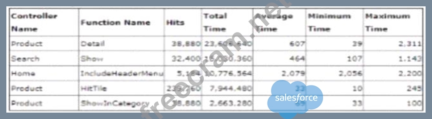 During a load test the storefront shows steady but slow performance on all the paces being tested. The Architect opens Pipeline Profiler and sorts the data by *total time" column. The following come as the top Ave items: Which controller should the Architect focus on to further investigate the performance issue?
