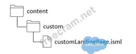 To render the customLandingPage template given the file structure in the question, the correct ISML method call is: * D. ISML.renderTemplate('content/custom/customLandingPage');This method correctly specifies the path to the template relative to the cartridge path. The renderTemplate function is used to render an ISML template, and the provided path should accurately reflect the template's location within the file structure, ensuring that the right content is rendered. This approach is consistent with best practices for organizing and referencing ISML templates in Salesforce B2C Commerce, ensuring accurate rendering of the desired content.
