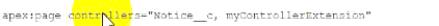 How is a controller and extension specified for a custom object named "Notice" on a Visualforce page?
