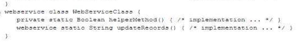 A developer needs to implement a custom SOAP Web Service that is used by an external Web Application. The developer chooses to include helper methods that are not used by the Web Application in the implementation of the Web Service Class.
