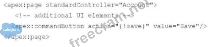 Consider the following code snippet for a Visualforce page that is launched using a Custom Button on the Account detail page layout.