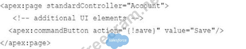 Consider the following code snippet for a Visualforce page that is launched using a Custom Button on the Account detail page layout.