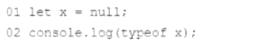 Question 8: Given the following code: let x = null; console.log(typeof x...