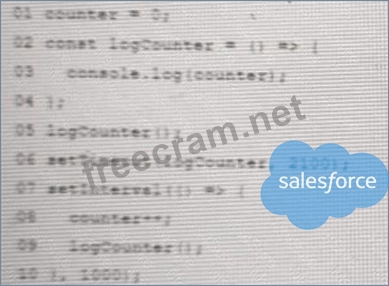 3 commentQuestion 39: Given the following code: Counter = 0; const logCounter = ()...