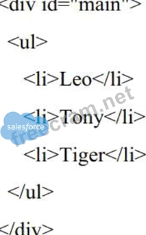 correct ans should be : document.querySelector('#main li:nth-child(2)').innerHTML = "The Lion.";