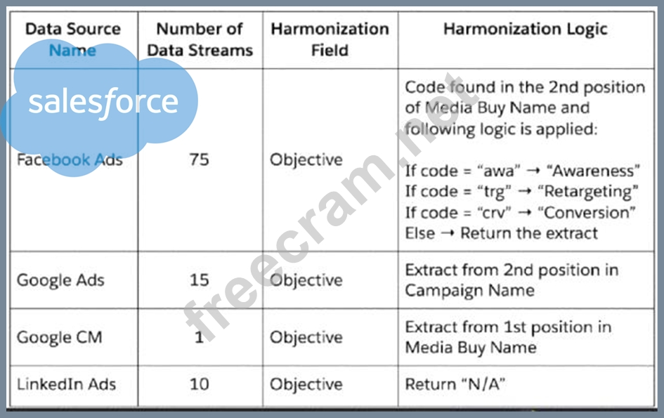 A client wants to integrate their data within Marketing Cloud Intelligence to optimize their marketing insights and cross-channel marketing activity analysis. Below are details regarding the different data sources and the number of data streams required for each source. When harmonizing the Objective field from within the data stream mapping, which advantage is gained?
