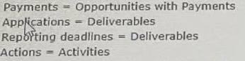 Similar to applications, use the Deliverables object to track reporting deadlines.