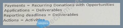 This configuration ensures that all aspects of the grant lifecycle are tracked effectively within Salesforce, leveraging NPSP's capabilities to manage opportunities, payments, deliverables, and activities.