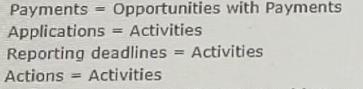 For each Opportunity, create related Payment records to track individual disbursements or installments of the grant amount.