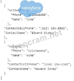 Refer to the exhibit. The card layout uses an integration Procedure as a data source. The cards use the layout data source. Which JSON data structure supports this card layout and follows best practices? A) B) C)