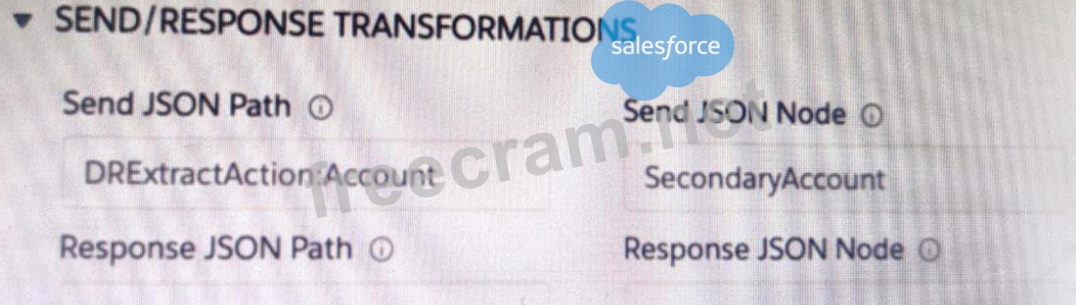 Refer to the exhibit. A developer has configured an integration Procedure element with SEND/RESPONSETRANFORMATIONS as shown. Alternatively, how could the developer configure Additional input to send exactly the same data? Assume that the developer checked Send Only Additional input.