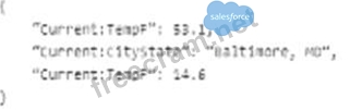 A developer needs to build a DataRaptor Transform to send current weather to both an OmniScript Card Layout. Which of these samples would be valid for the Expected Output JSON?