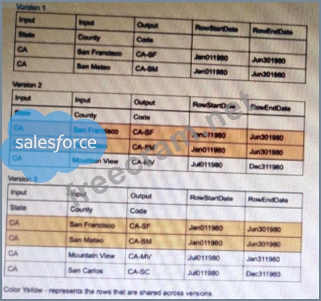 A. The row is deleted only in Version 3.