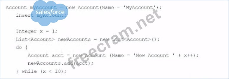 A is correct answer. The List of account is not inserted into the database.