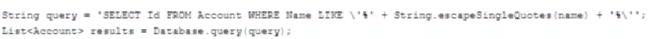 Assuming that naze is 8 String obtained by an <apex:inpotText> tag on 8 Visualforce page, which two SOQL queries performed are safe from SOQL injection?