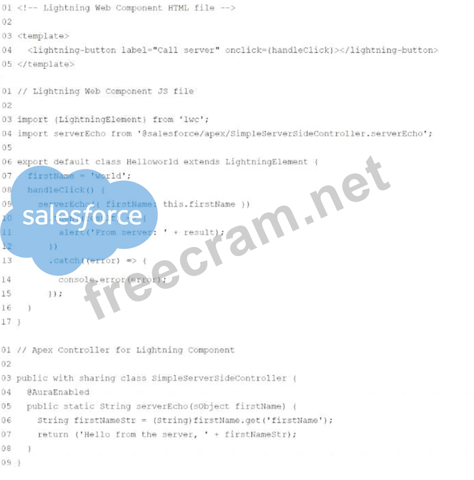 Change B is required because the argument in the Apex controller's serverEcho method must match the data type expected by the JavaScript calling the method. The Apex method expects an Object named firstName, which is then cast to a String inside the method. The JavaScript is passing an object with a property firstName, so no change is needed in the JavaScript.