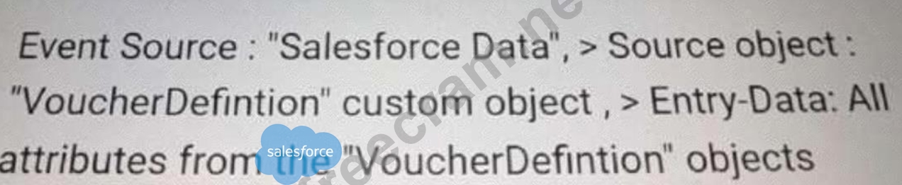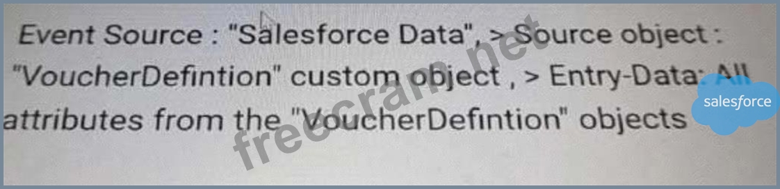 In practice, setting up this entry event in Journey Builder would involve specifying the criteria for the trigger (in this case, the creation of a voucher) and mapping the necessary data fields for personalization. This is consistent with Salesforce's best practices for creating personalized, real-time customer engagements through Journey Builder.