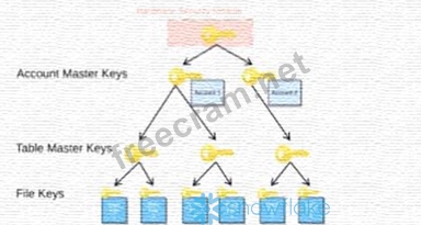 Tri-Secret Secure is a feature that allows customers to use their own key, called the customer-managed key (CMK), in addition to the Snowflake-managed key, to create a composite master key that encrypts the data in Snowflake. The composite master key is also known as the account master key (AMK), as it is unique for each account and encrypts the table master keys (TMKs) that encrypt the file keys that encrypt the data files. The customer-managed key is used at the account level, not at the root level, the table level, or the micro-partition level. The root level is protected by a hardware security module (HSM), the table level is protected by the TMKs, and the micro-partition level is protected by the file keys12. References: