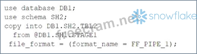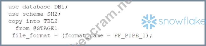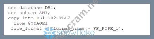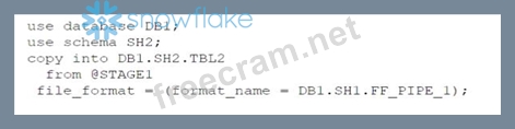 Option C: It uses an invalid syntax for the COPY INTO command. The FILE FORMAT parameter cannot specify a stage name, only a file format name or options2.