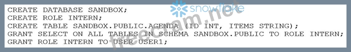 An Architect entered the following commands in sequence: USER1 cannot find the table. Which of the following commands does the Architect need to run for USER1 to find the tables using the Principle of Least Privilege? (Choose two.)