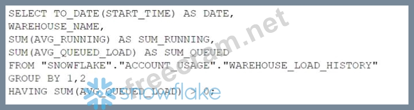 The correct answer is option B. This query is designed to assess the need for a multi-cluster warehouse by examining the queuing time (AVG_QUEUED_LOAD) on different days and virtual warehouses. When the AVG_QUEUED_LOAD is greater than zero, it suggests that queries are waiting for resources, which can be an indicator that performance might be improved by using a multi-cluster warehouse to handle the workload more efficiently. By grouping by date and warehouse name and filtering on the sum of the average queued load being greater than zero, the query identifies specific days and warehouses where the workload exceeded the available compute resources. This information is valuable when considering scaling out warehouses to multi-cluster configurations for improved performance.