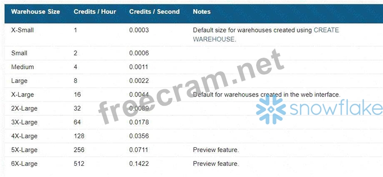 Question 48: How many credits does a size 3X-Large virtual warehouse cons...