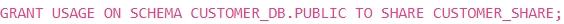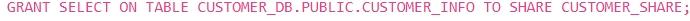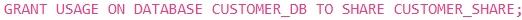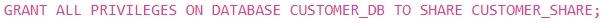 You are tasked with creating a share to provide access to a database named `CUSTOMER DB'.